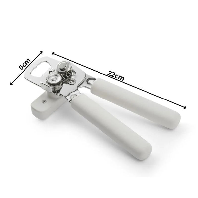 Simples de usar, ele permite abrir latas com segurança ao girar a parte móvel após o encaixe, e também funciona como abridor de garrafas, bastando posicionar e pressionar levemente.