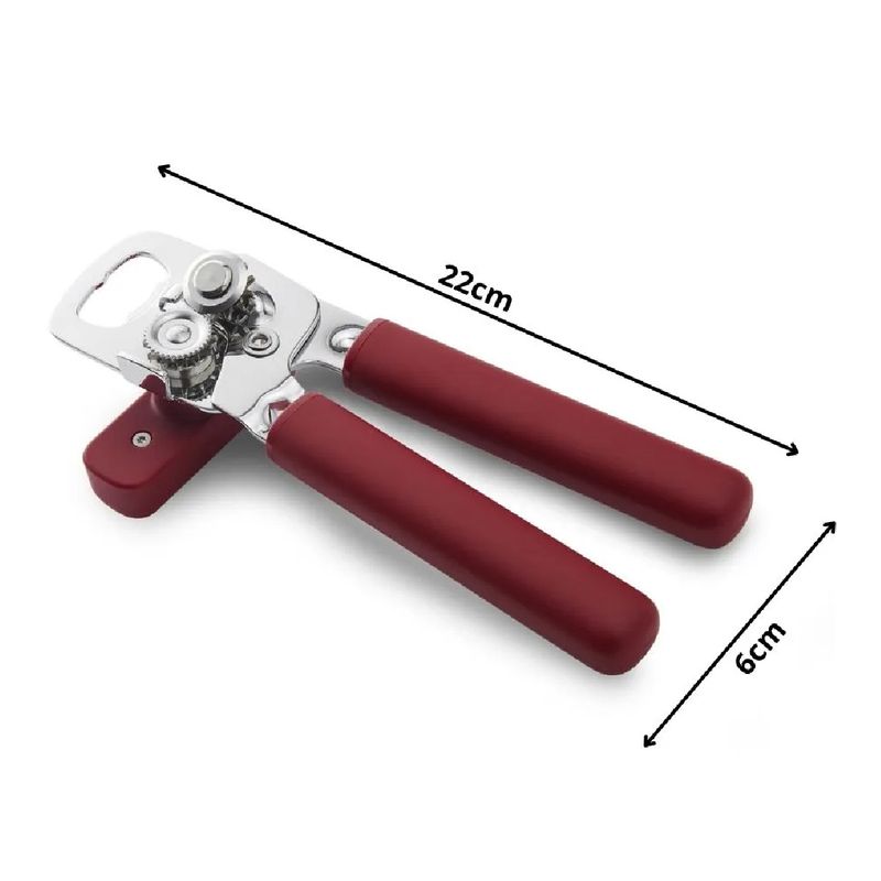 Simples de usar, ele permite abrir latas com segurança ao girar a parte móvel após o encaixe, e também funciona como abridor de garrafas, bastando posicionar e pressionar levemente.