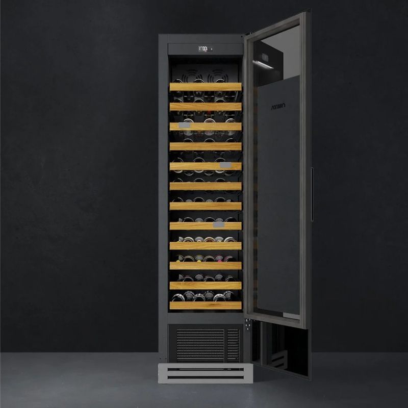 A adega single zone attimo built-in para 72 garrafas foi desenvolvida para integrar perfeitamente projetos sofisticados, unindo tecnologia, precisão térmica e design elegante. Disponível com abertura para a direita ou esquerda, adapta-se com facilidade ao layout do ambiente, oferecendo armazenamento ideal para vinhos tintos, brancos e rosés em uma única zona de temperatura.
