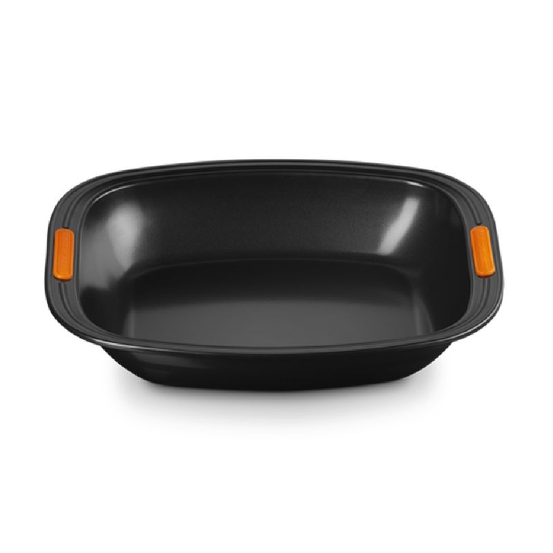 A assadeira possui laterais altas, para que você possa preparar quantidades generosas dos seus pratos favoritos. É perfeita para cozinhar de tudo, desde doces a um farto assado de domingo. Os insertos de silicone resistentes ao calor em ambos os lados tornam o levantamento e o transporte seguros e fáceis.