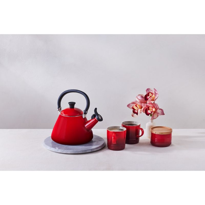 Nada supera o aroma tentador de chá ou café feito na hora. Eleve o seu ritual diário com a elegante Chaleira Kone da Le Creuset. Feita com Aço Carbono Esmaltado que fornece o aquecimento rápido. Tamanho da base generoso com a capacidade de 1litro de água. Possui uma pega única para maior controle e segurança. Disponível em uma variedade de cores elegantes e um design exclusivo que deixará sua cozinha ainda mais bonita. Ideal para preparar um café francês prensado ou um chá delicioso. Com apito de tom único quando a água começa a ferver, ela é a chaleira perfeita para você.