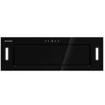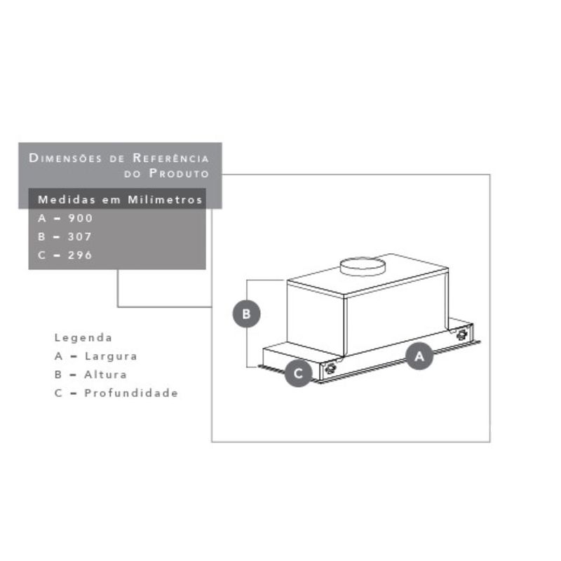 Com instalação embutida e acabamento em vidro preto, ela integra-se perfeitamente ao projeto, mantendo um visual clean e elegante. A aspiração perimetral e a vazão de 1.200 m³/h garantem excelente captura de vapores e odores, enquanto seus filtros metálicos e de carvão proporcionam alta eficiência de filtragem.