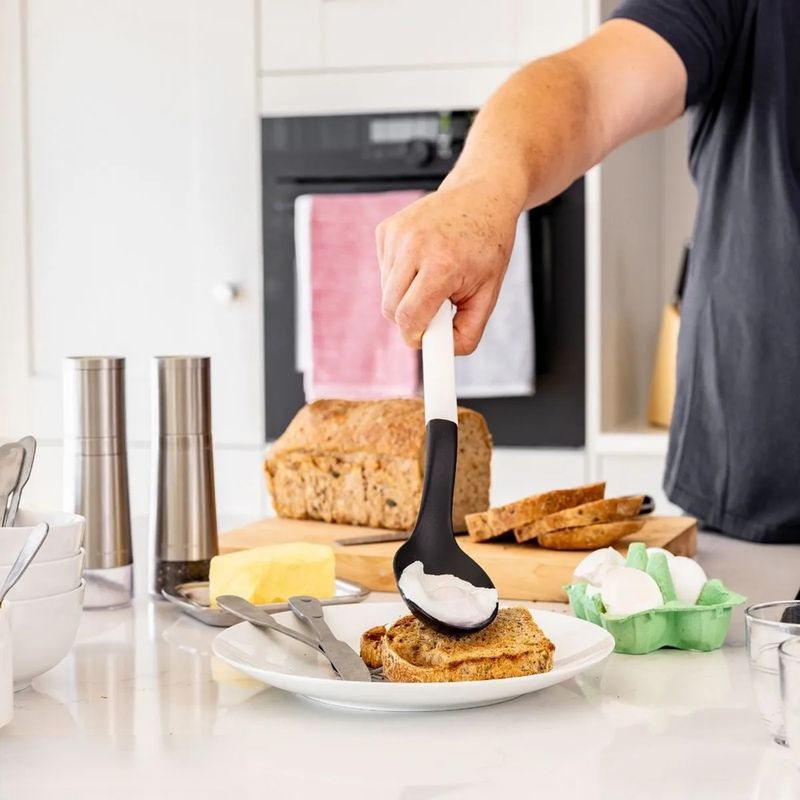 Sua cabeça perfurada em nylon resistente ao calor garante segurança no uso diário, inclusive em panelas antiaderentes. O cabo ergonômico em ABS com acabamento fosco proporciona pegada firme, confortável e higiênica, mesmo em usos prolongados. Já a alça integrada para pendurar facilita a organização da cozinha, mantendo tudo sempre à mão com o padrão clássico KitchenAid.