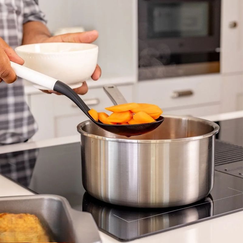 A Colher de Servir KitchenAid Multiuso Perfurada é um utensílio indispensável para quem busca praticidade, conforto e eficiência no preparo e no serviço de alimentos. Ideal para drenar líquidos e gorduras, ela é perfeita para servir massas, legumes, frituras e diversas outras receitas, sem danificar superfícies delicadas.