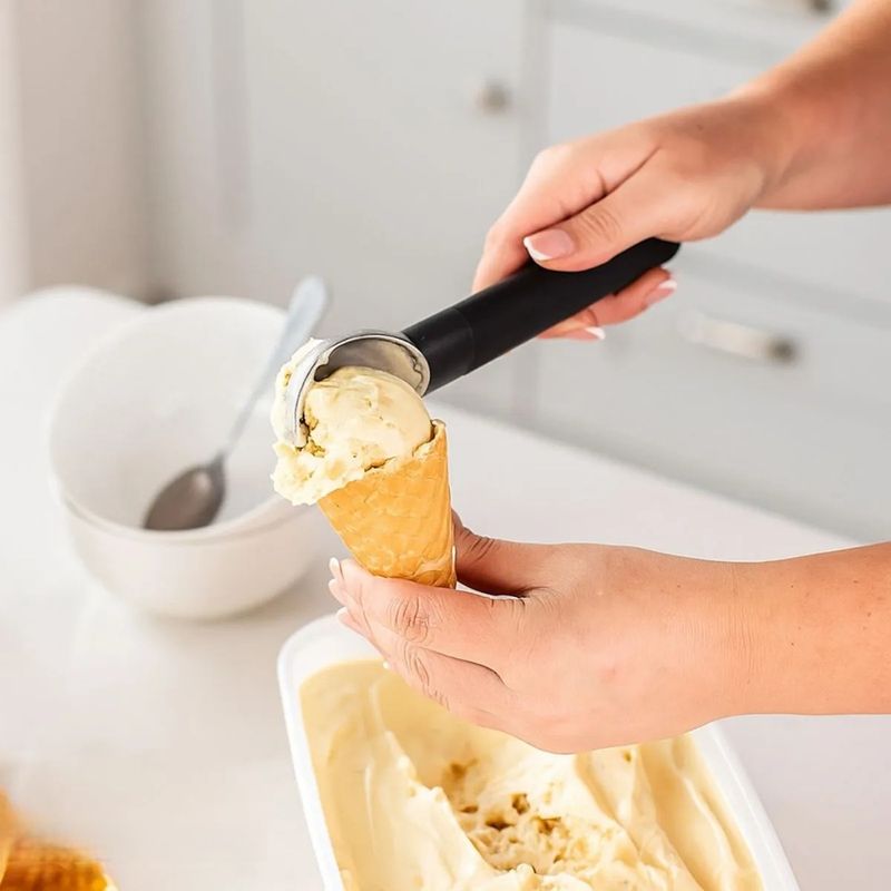 A Colher de Sobremesa KitchenAid de Concha em Zinco Preto é ideal para servir sorvetes, açaí e sobremesas geladas com praticidade e elegância. Desenvolvida para cozinhas modernas, combina design sofisticado com desempenho confiável no uso diário, valorizando a experiência à mesa e o visual do ambiente.