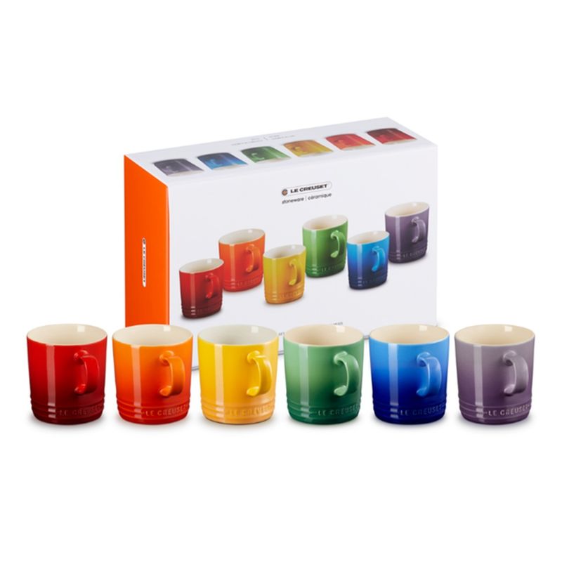O Conjunto de 6 Canecas Le Creuset Rainbow Collection 350 ml em cerâmica traz a paleta vibrante que ilumina qualquer refeição. Produzidas em cerâmica de alta qualidade, as peças possuem esmalte durável que resiste a marcas de utensílios e arranhões, mantendo a beleza e o brilho ao longo do tempo. Graças à sua cerâmica densa, evitam absorção de umidade, prevenindo rachaduras e fissuras. Com interior envidraçado quase antiaderente, são fáceis de limpar e perfeitas para o uso diário.