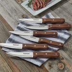 • cabos em madeira de nogueira, com visual sofisticado e toque confortável