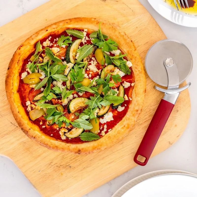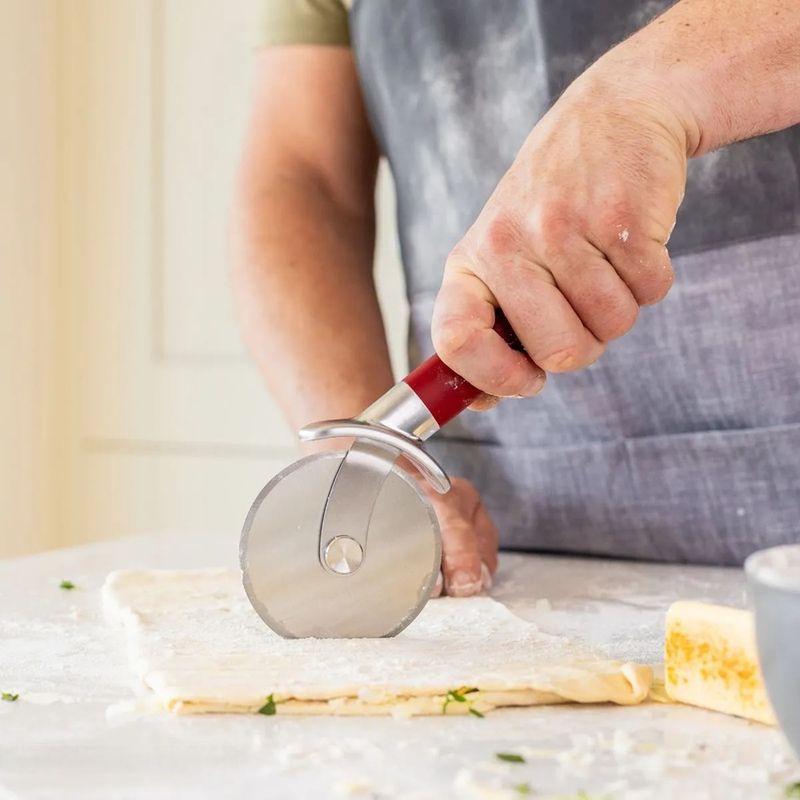 O Cortador de Pizza Profissional KitchenAid é o utensílio ideal para fatiar pizzas com precisão, rapidez e total controle. Desenvolvido para o uso diário, combina lâmina eficiente em aço inoxidável com design moderno, garantindo cortes uniformes sem esforço e um acabamento elegante para a sua cozinha.