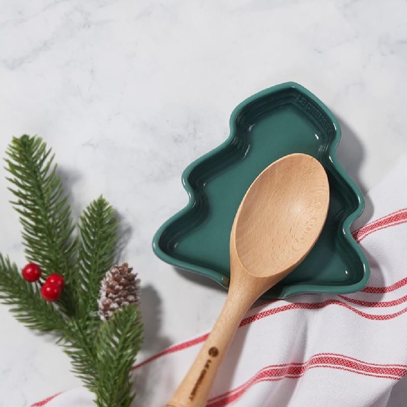 O Descanso de Colher Árvore Le Creuset traz alegria e praticidade para sua cozinha neste Natal. Seu formato em árvore e as cristas funcionais impedem que colheres e utensílios deslizem, enquanto a base larga retém respingos com eficiência. Produzido em cerâmica premium com esmalte vibrante, é resistente a lascas, fácil de limpar e pode ser levado à lava-louças. Um toque festivo que une charme, funcionalidade e o espírito natalino à sua mesa.