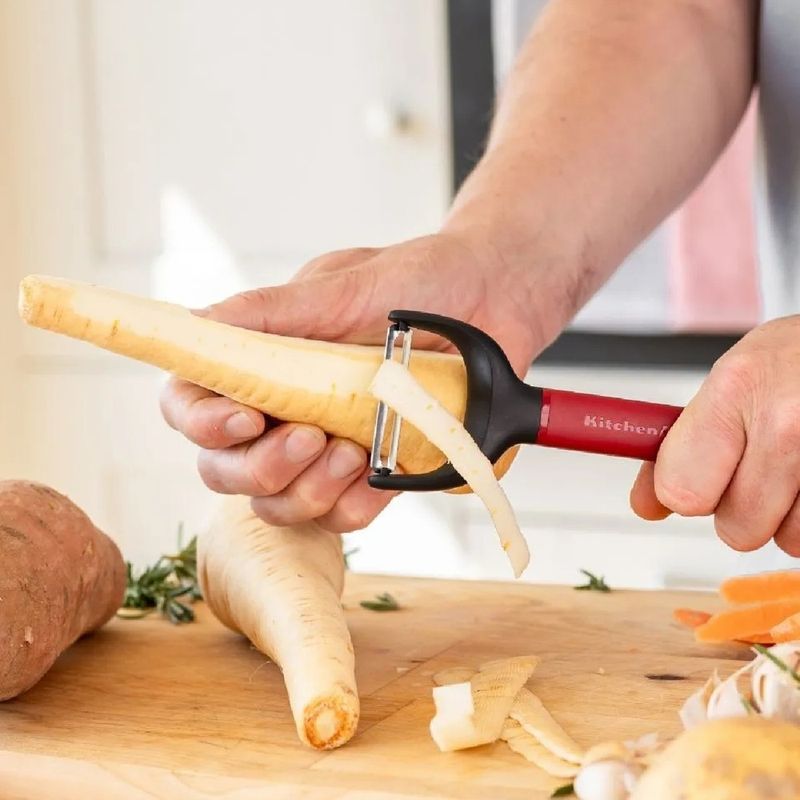 O descascador y-peeler da coleção clássica KitchenAid combina design moderno, praticidade e alto desempenho para o preparo diário. Compacto e funcional, oferece cortes precisos e seguros, valorizando a experiência na cozinha com a qualidade reconhecida da marca.