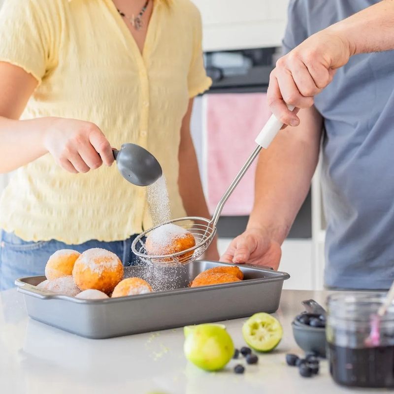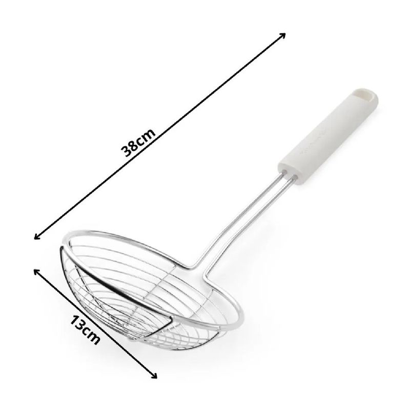 A escumadeira KitchenAid para fritura é um utensílio essencial para quem busca eficiência, segurança e elegância no preparo de alimentos fritos. Com design moderno e funcional, permite retirar os alimentos do óleo com facilidade, garantindo a drenagem rápida de líquidos e gorduras durante o uso.