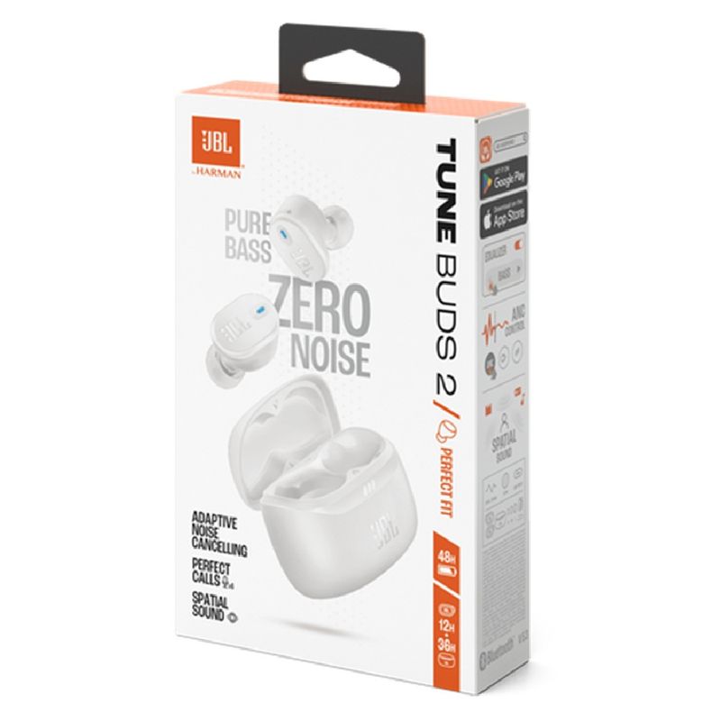 os fones de ouvido jbl tune buds 2 oferecem imersão sonora em qualquer lugar, com cancelamento de ruído adaptável e bateria de longa duração. com até 48 horas de reprodução, som jbl pure bass e jbl spatial sound, eles combinam desempenho e conforto graças ao design ergonômico resistente à água e poeira. as chamadas ficam mais claras com redução de ruído ambiente, enquanto os controles táteis facilitam o uso diário. através do app jbl headphones, é possível personalizar totalmente o áudio com a tecnologia personi-fi 3.0.