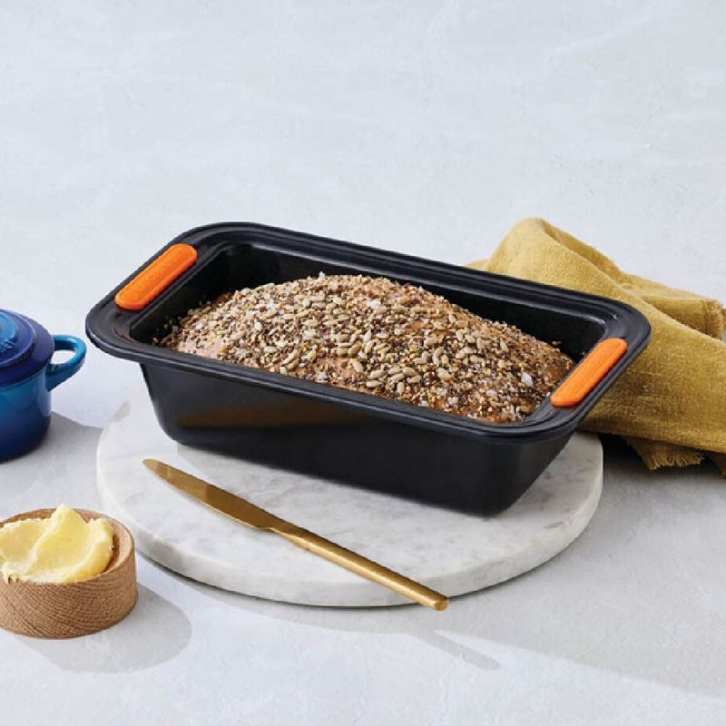 Aperfeiçoe suas receitas favoritas de bolo e pão nesta útil forma retangular para pão. O formato clássico proporciona resultados incríveis, enquanto as alças de silicone resistentes ao calor permitem que você levante e retire suas criações do forno com luvas, de forma segura e fácil.