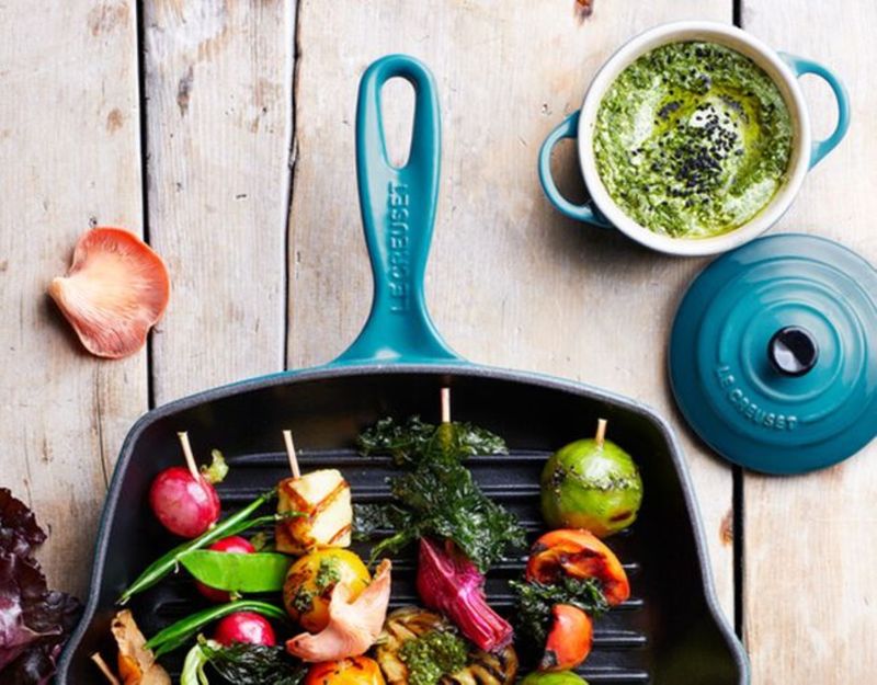 De vegetais saborosos a bifes, frango e camarão de dar água na boca, a Grelha Quadrada produz um sabor delicioso como o de uma grelha de churrasqueira. Suas ondulações permitem que a gordura e o óleo escorram, e os bicos em duas laterais permitem verter líquidos sem derramar.