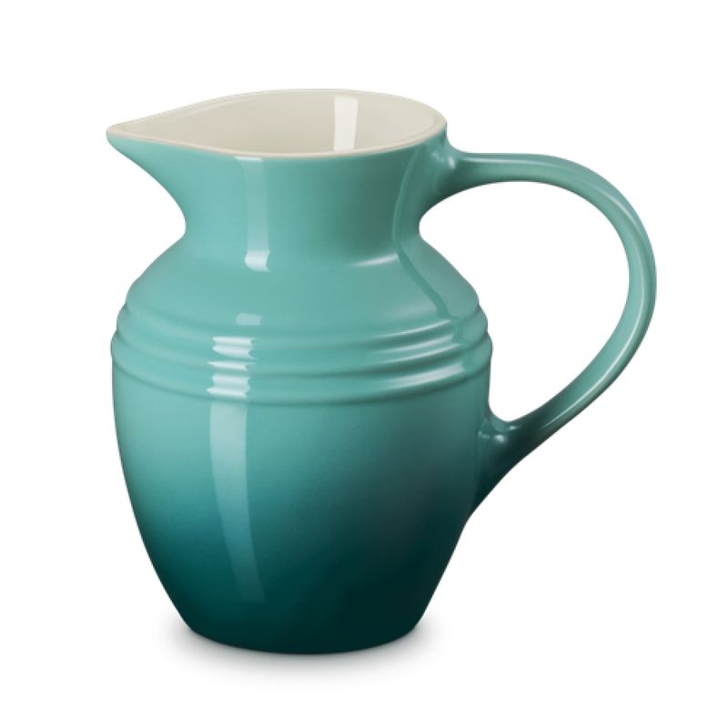 Seja para servir limonada em uma festa no quintal ou suco de laranja no café da manhã, a Jarra Clássica Le Creuset traz charme e funcionalidade para a mesa. Produzida em cerâmica premium, é resistente às variações de temperatura, podendo ir da geladeira a líquidos quentes com segurança. Sua alta densidade ajuda a manter bebidas quentes aquecidas e bebidas frias refrescantes por mais tempo. A alça ergonômica proporciona uma pegada firme, enquanto o bico foi projetado para evitar gotejamentos, tornando o servir mais prático e elegante. Além disso, também pode ser utilizada como um belo vaso decorativo para flores.