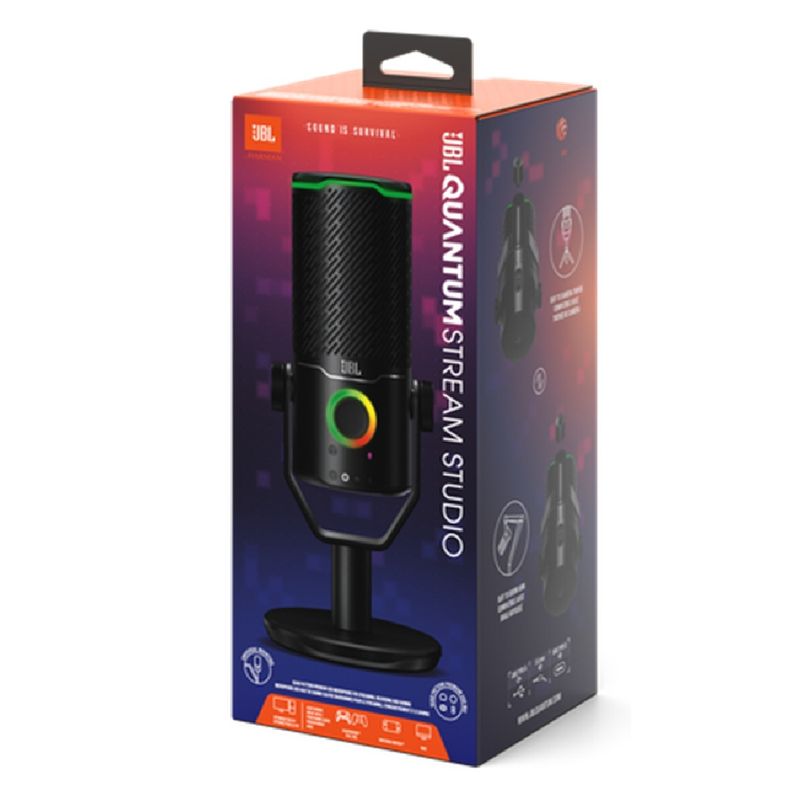 o jbl quantum stream studio foi desenvolvido para entregar captação profissional em qualquer situação: jogos, streaming, gravações solo, entrevistas ou conversas em grupo. com quatro padrões polares selecionáveis, ele se adapta rapidamente ao tipo de voz ou ambiente, garantindo clareza e presença sonora. o medidor rgb vu permite monitorar visualmente o nível de áudio, enquanto o compressor de faixa dinâmica mantém todas as vozes equilibradas. para quem faz transmissões, é possível ajustar com precisão o balanço entre o áudio do jogo e os comentários. o software jbl quantumengine amplia ainda mais o controle, permitindo personalizar equalização, redução de ruído e iluminação rgb.