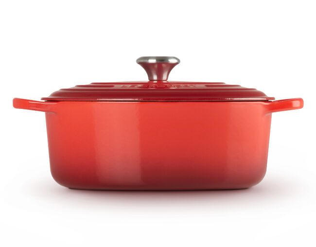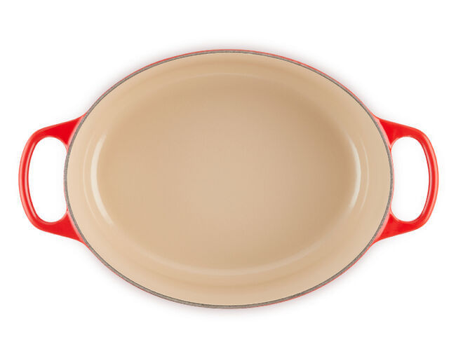 A icônica Panela Oval Signature da Le Creuset é indispensável nas cozinhas de cozinheiros domésticos e chefs profissionais. Habilmente trabalhada com ferro fundido esmaltado, a versatilidade diária da Panela Oval Signature a torna ideal para tudo, desde cozimento lento e refogado até assar, cozinhar, fritar e muito mais. A forma oval é particularmente adequada para cortes maiores de carne, frangos inteiros e para assar pães de formato oval.
