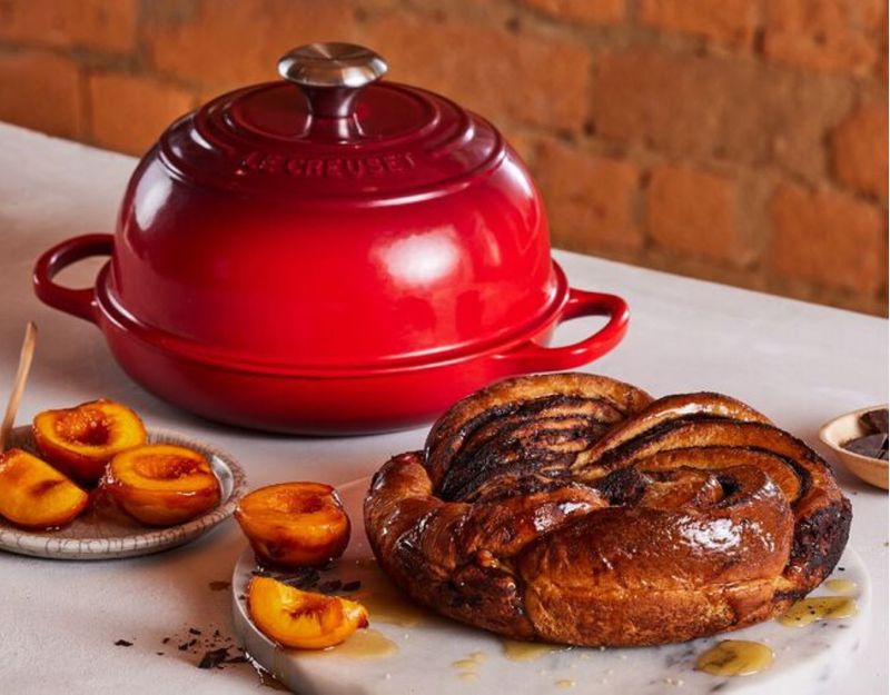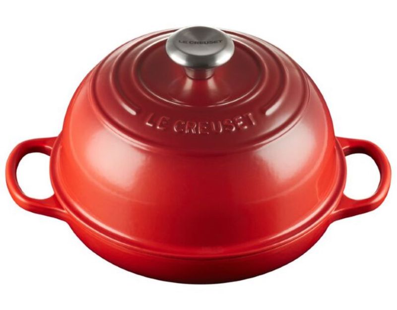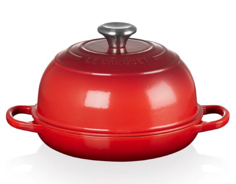 • A Panela para da Pão Signature Le Creuset, é funcional e bonita. Apresenta uma tampa em forma de cúpula que prende e circula o vapor para um excelente sabor final, enquanto sua base assa uma camada uniforme e produz uma crosta dourada e crocante marcada com nossos três anéis escrito Le Creuset.