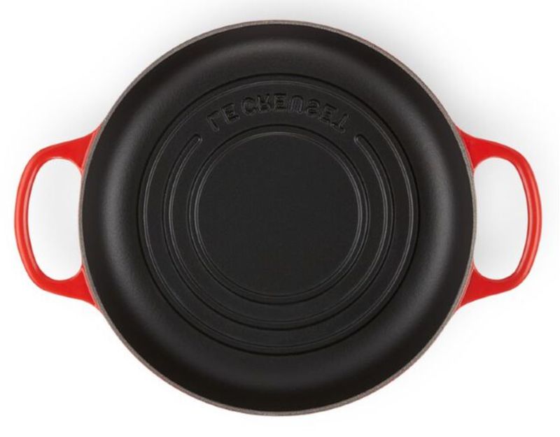 • A base produz uma crosta dourada e crocante marcada com nossos três anéis escrito Le Creuset;