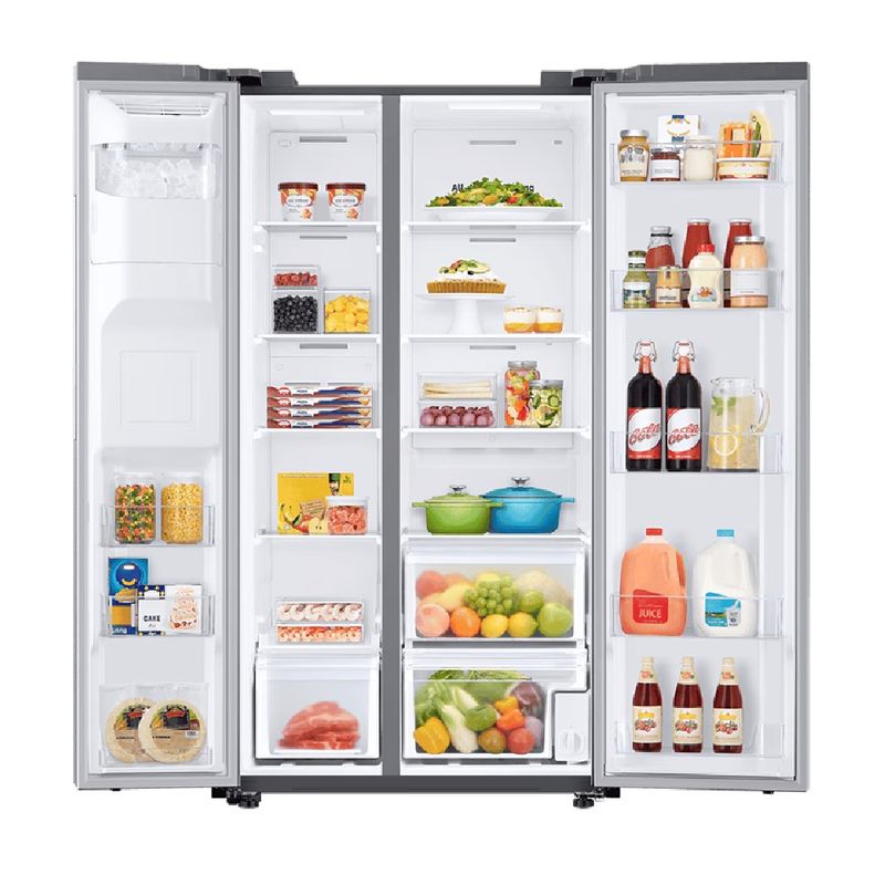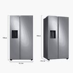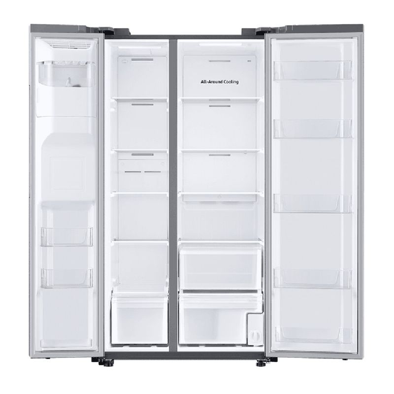 A geladeira Samsung com tecnologia SpaceMax™ combina amplo espaço interno, eficiência energética e design moderno. Suas paredes mais finas permitem maior capacidade sem aumentar as dimensões externas, enquanto o sistema All Around Cooling™ mantém a temperatura uniforme em todos os compartimentos. Com acabamento elegante em inox look, dispenser de água e gelo e compressor Digital Inverter, é uma solução completa para quem busca desempenho, economia e sofisticação na cozinha.