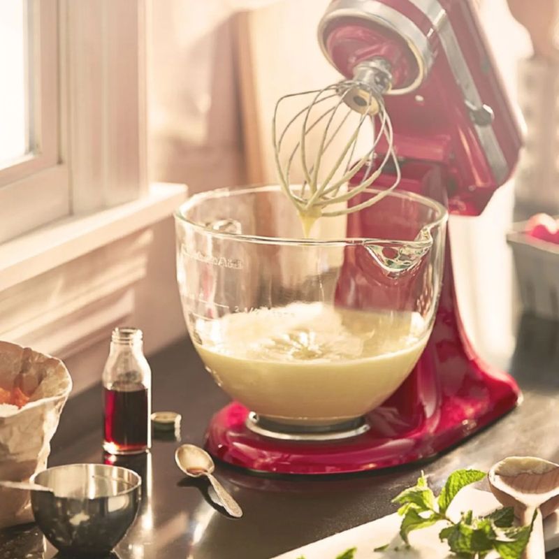 A Tigela de Vidro Lisa é um acessório versátil e funcional, desenvolvida especialmente para as batedeiras KitchenAid modelos Classic (KEA26) e Artisan (KEA28, KEA30, KEA33 e KED33). Com capacidade de 4,8 litros, permite acompanhar todo o preparo graças ao seu corpo transparente, oferecendo praticidade e controle visual durante o uso.